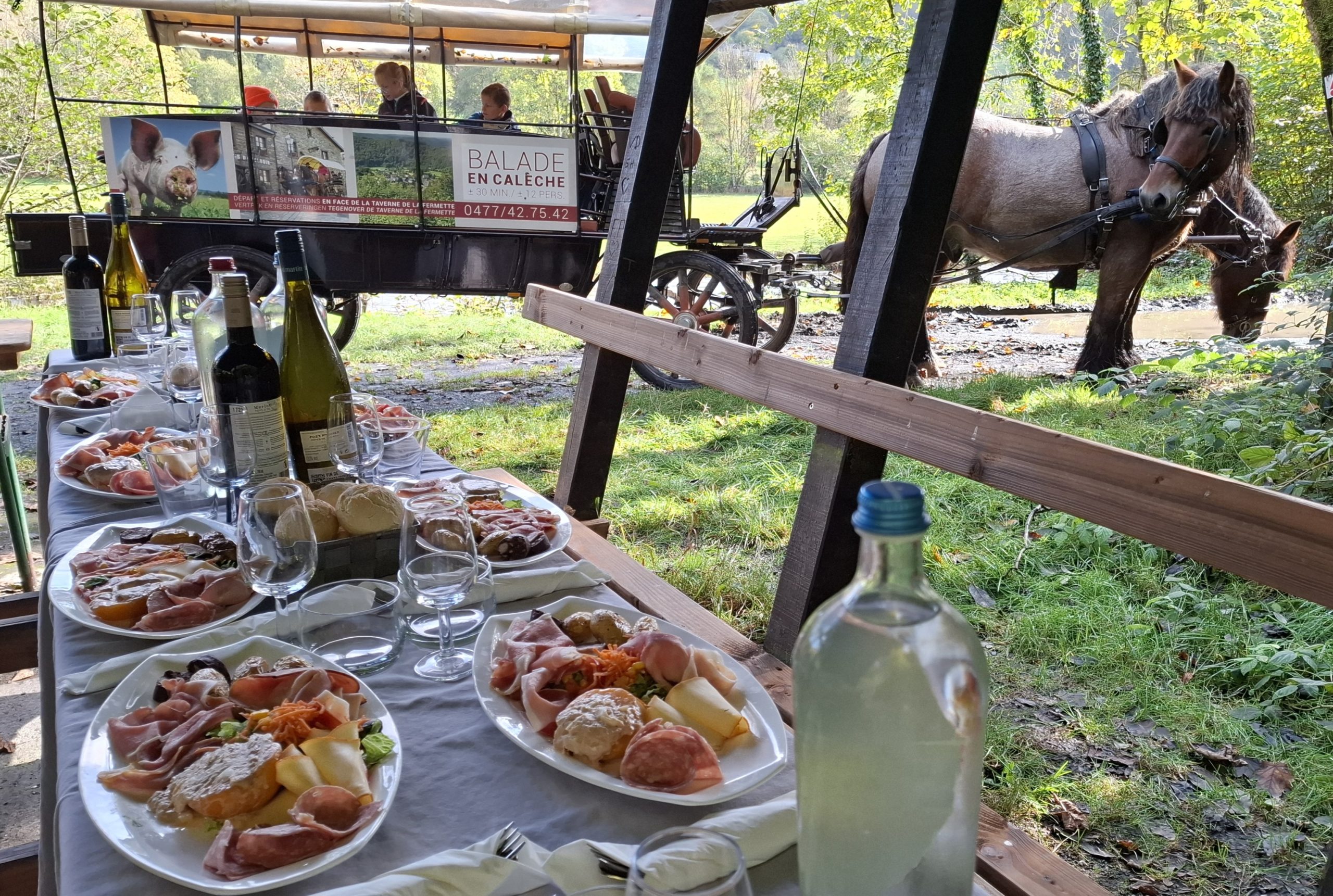 Bien plus qu’un simple picnic, cette balade vous propose une visite de la forêt ardennaise, du village de Frahan et son passage à gué dans la Semois. La pause « GOURMANDE » a lieu au bord de la Semois à Laviot. Vous débuterez par un apéritif, suivi de la véritable Assiette Ardennaise, vins, bières locales,softs et desserts.